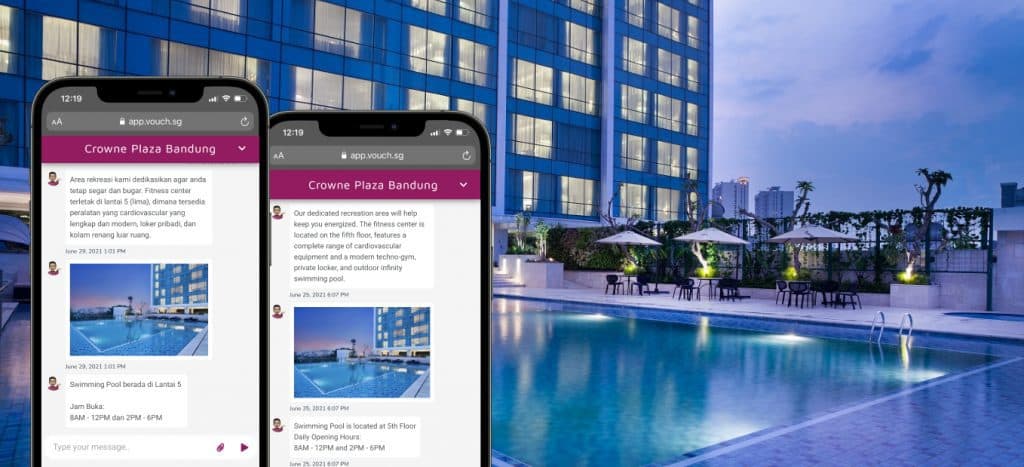 Crowne Plaza Bandung is a five-star IHG hotel in downtown Bandung, Indonesia that seeks new technologies to become more sustainable and efficient in its daily operationsVouch created the Digital Concierge Jaka, which is easy to use and requires minimal training for the staff, and it helps the team at Crowne Plaza Bandung to streamline environmentally friendly operations to reduce paper usage, and deliver high quality services to its guests more efficiently.Vouch’s Guest Experience Platform also has other features such as contactless check-in and facility booking to enhance guest experience throughout a guest’s stay.
