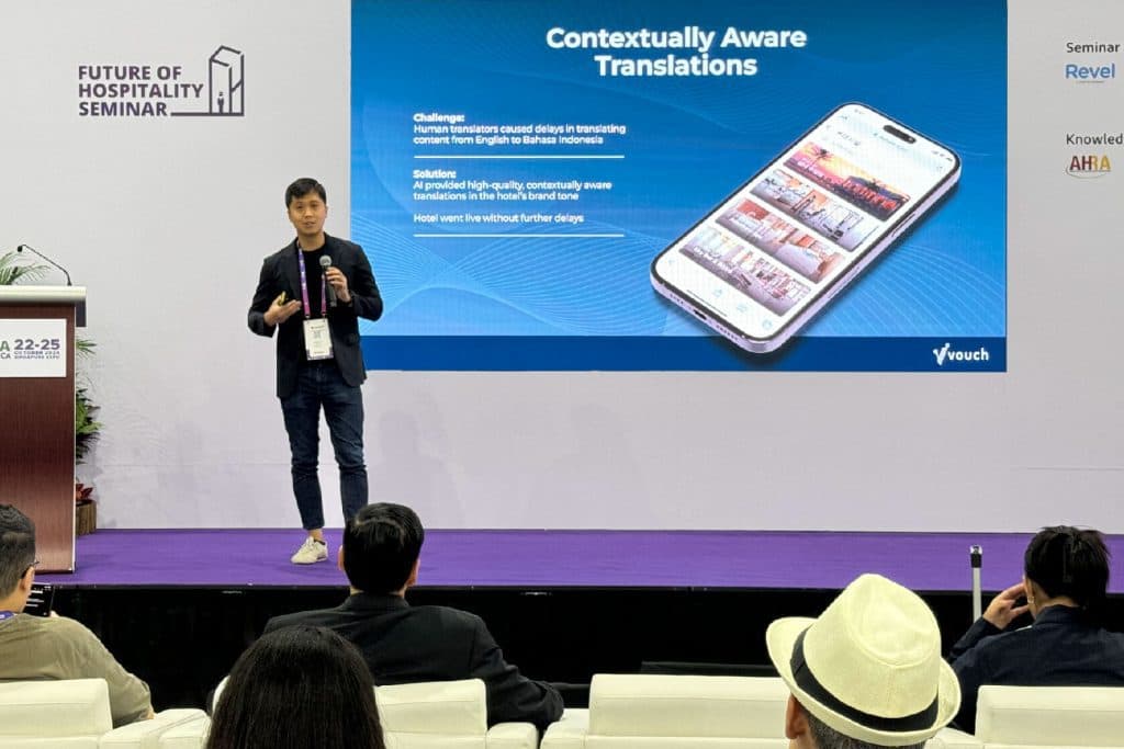 1. Streamlined Onboarding with AIGiving an account of a typical onboarding process with hotels, he said: “Onboarding used to be a time-consuming process whereby significant amounts of data have to be collated to populate the platform with information and content. Hotel marketing teams would have to manually gather details like room descriptions and amenities and feed it into the system.”“This is where one of the key strengths of GenAI comes into play – the ability to mimic tone of voice. AI is able to automate much of this process by scraping through public data to auto-populate content and align it with the hotel’s brand tone and style.”“With that, onboarding time was reduced from weeks to just hours. By using AI to gather data and shape content to a hotel’s unique brand tone, hotels are able to accelerate their go-to-market time while keeping to brand standards.”2. Contextually Aware TranslationsJoseph then proceeded to share the second advantage that GenAI has – the ability to understand context.“AI-driven translations now go beyond literal word conversion to capture brand tone and context accurately. For example, translating ‘poolside snacks’ should be done in a way that conveys a relaxed vibe, rather than a sterile phrase, to entice guests and prevent potential misunderstandings.”“We had this problem where one of the hotels that we work with wanted to translate our platform from English to Bahasa Indonesia. They engaged a human translator and it took them about a month to get back with the translations. The hotel felt like something was still not right and wanted to delay the go-live of our product.” He recounted.He added: “I told my team, ‘why don’t we use GenAI to do the translations for them?’ and we happen to have just built a feature to do that. We then told them that we will provide them with the Bahasa Indonesia translations and it turns out, they were happy with the translations! We ended up going live with the GenAI translations because the hotel was so satisfied with it.”3. Boosting F&B Revenue with Predictive and Generative AIJoseph also highlighted how Vouch’s solutions can drive up ancillary revenue by tailoring F&B offerings to guest preferences.“When a guest orders in-room dining, our solution collects and reveals insights on guest ordering behaviour. Predictive AI uses this data to make smart suggestions on which menu items are likely to pair and perform well, allowing hotels to tailor their food and beverage offerings to boost ancillary revenue. Generative AI then crafts engaging, brand-consistent descriptions that encourage guests to try these dishes.”“And for that, we were able to achieve a 20% uplift in F&B revenue for one of our clients.” he explained.